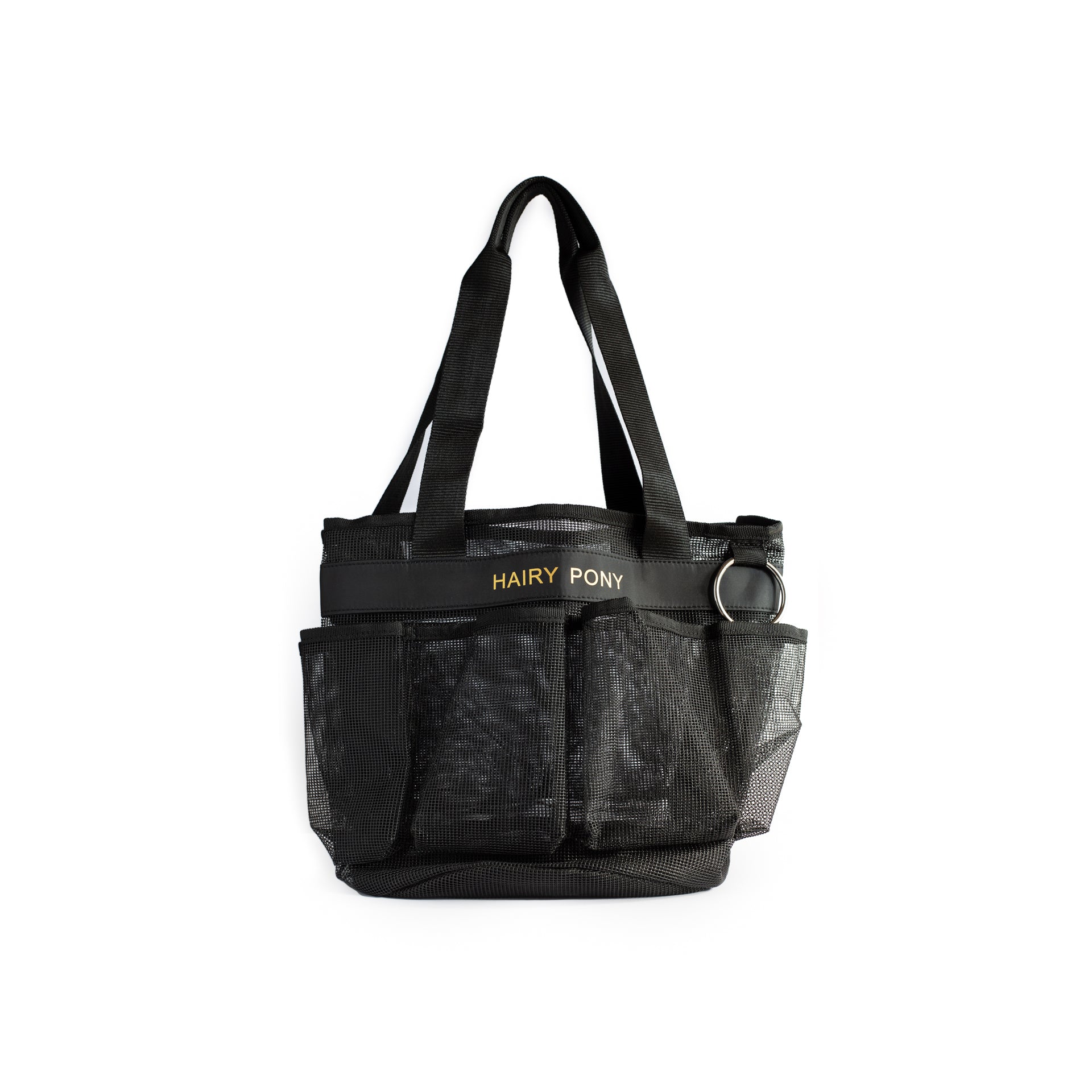Made with tough, quick-drying mesh material. Features plenty of pocket space & the ability to stand or hang up in your wash bay and fit a bucket internally. The HAIRY PONY WASH BAY BAG provides easy access to your wash bay tools whilst washing your horse. Also provides quick & easy storage & transportation of your wash bay products.